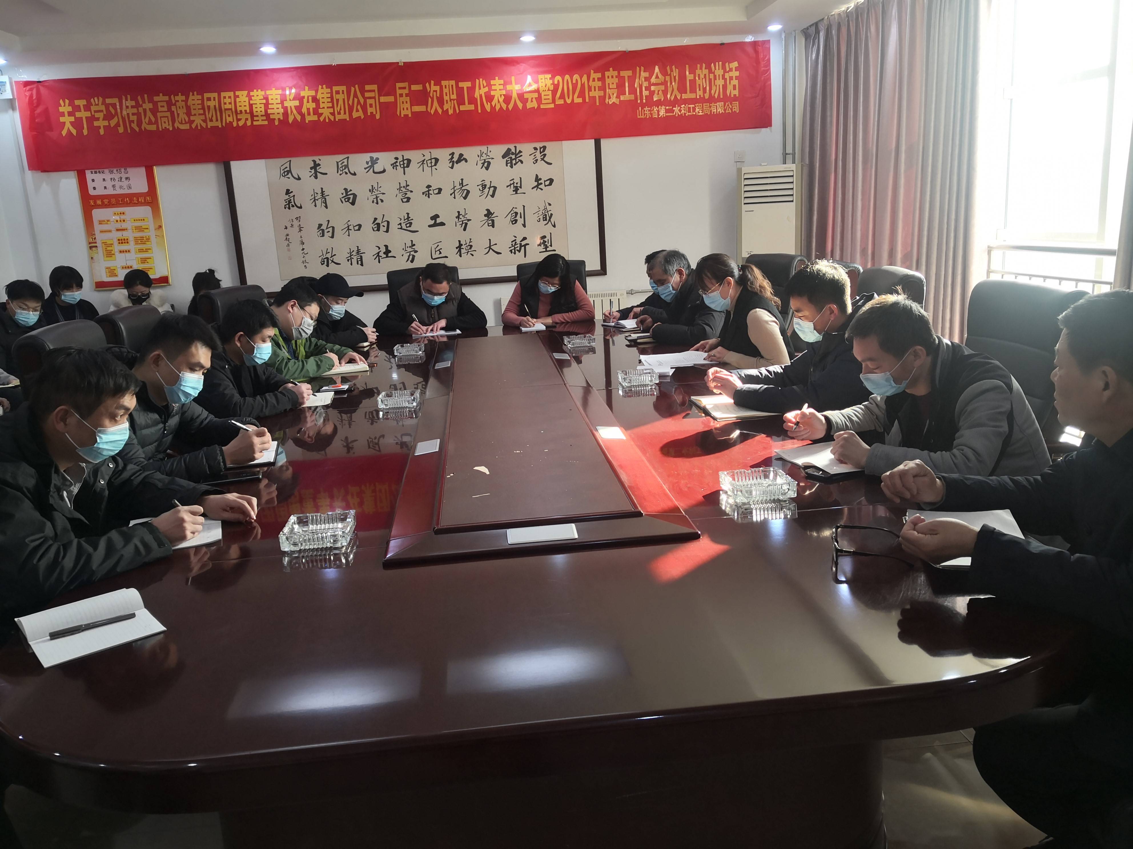 2021年2月8日,山东省第二水利工程局有限华体会平台召集机关各科室、各项目人员组织开展学习贯彻集团党委书记、董事长周勇在集团华体会平台一届二次职工(会员)代表大会暨2021年度工作会议上的重要讲话。