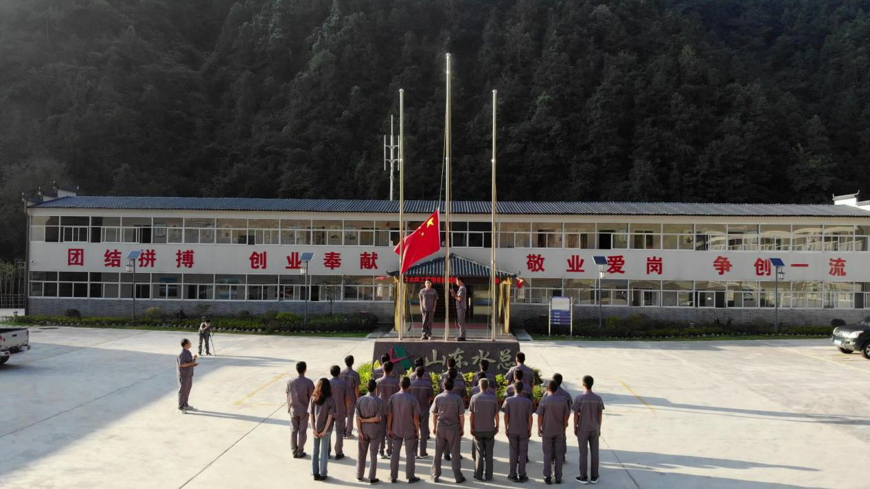 红旗如画,展现光辉历程;岁月如诗,颂扬丰功伟绩。为庆祝我们伟大的祖国72岁华诞,讴歌伟大的中国共产党百年的辉煌。10月1日上午,华体会平台第六分华体会平台于杭州市临安区双溪口水库工程项目部举行国庆节升旗仪式,向祖国献礼。