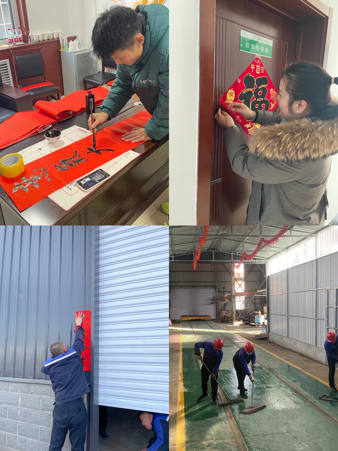 “辞旧迎新过年啦”!在春节到来之际,水工机械华体会平台开展“迎新春、挂灯笼、大扫除”活动。