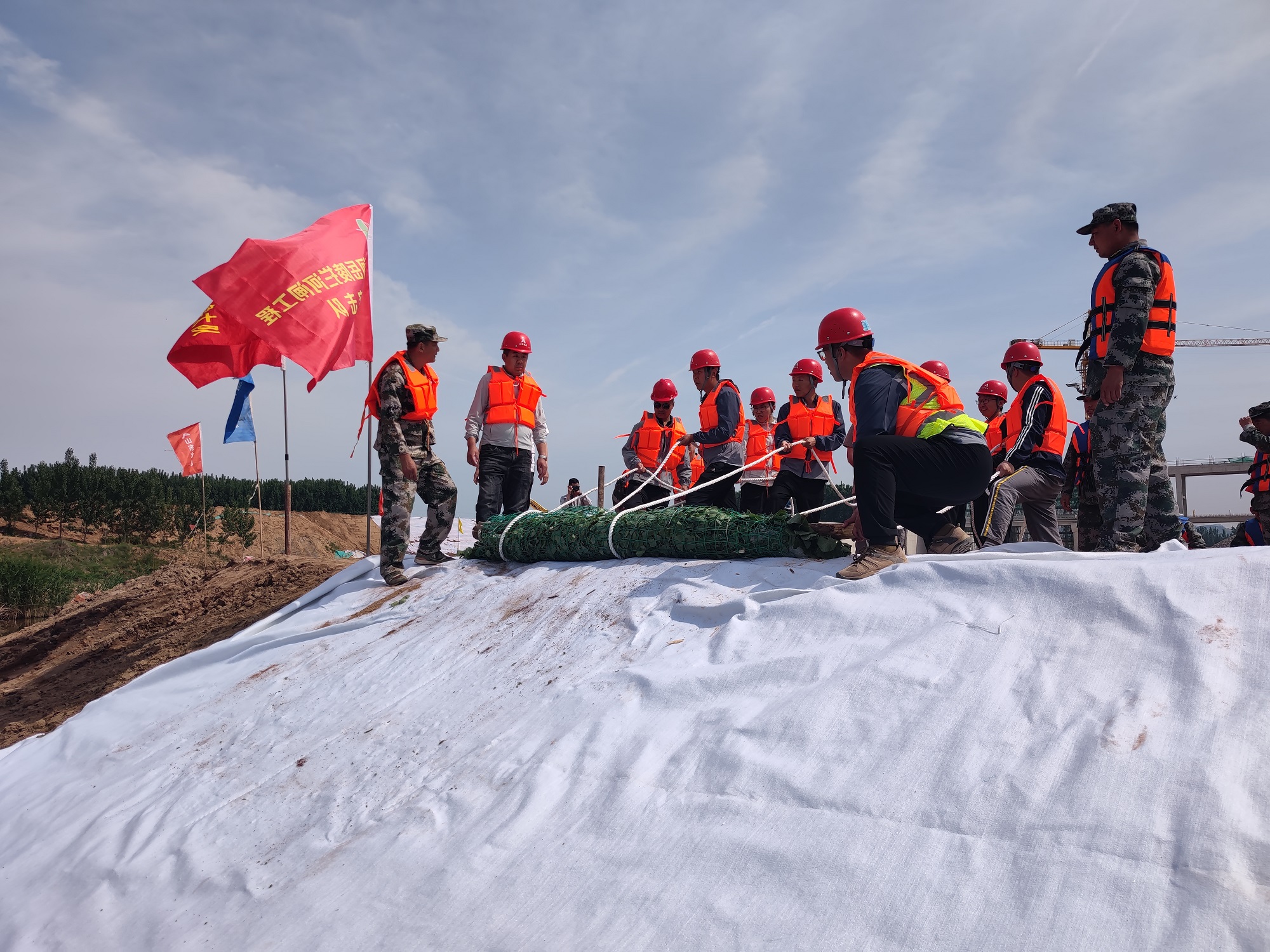 5月9日下午,第七分华体会平台泗水县泗河岳陵拦河闸项目部联合泗水县水务局、泗水县应急局等单位开展了岳陵拦河闸工程防汛应急救援演练。本次模拟演练设置坝前坍塌抢护、坝后管涌抢护、增高子堰抢护3个演练场景。