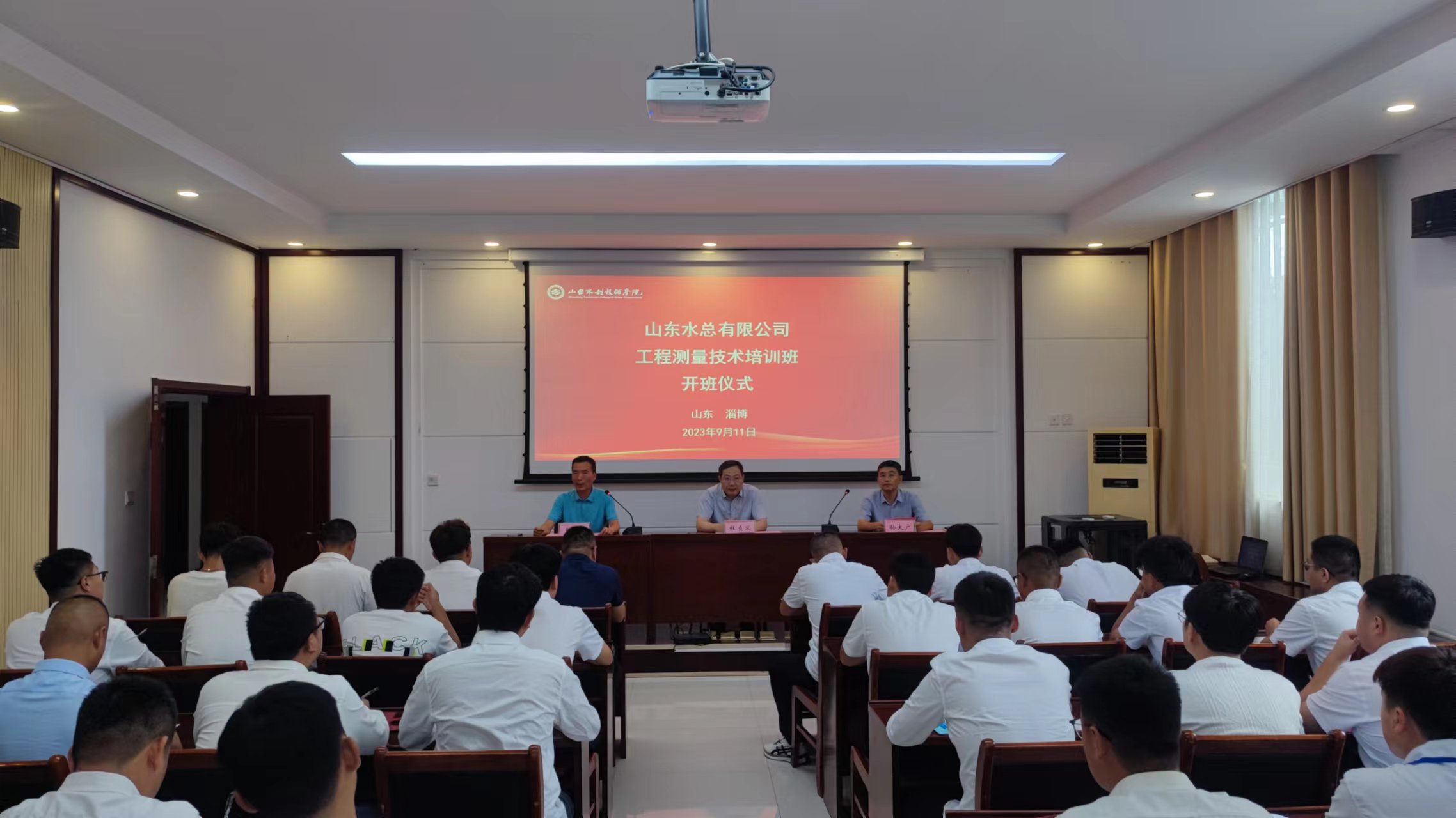 9月11日,华体会平台2023年工程技术测量培训班在山东水利技师学院顺利开班,华体会平台党委委员、副总经理杜贞义,山东水利技师学院党委委员、高级技工部主任孙大广出席培训班开班仪式,仪式由山东水利技师学院培训处副主任张岩主持。来自华体会平台各权属单位30名测量人员参加本次为期5天的全脱产学习。