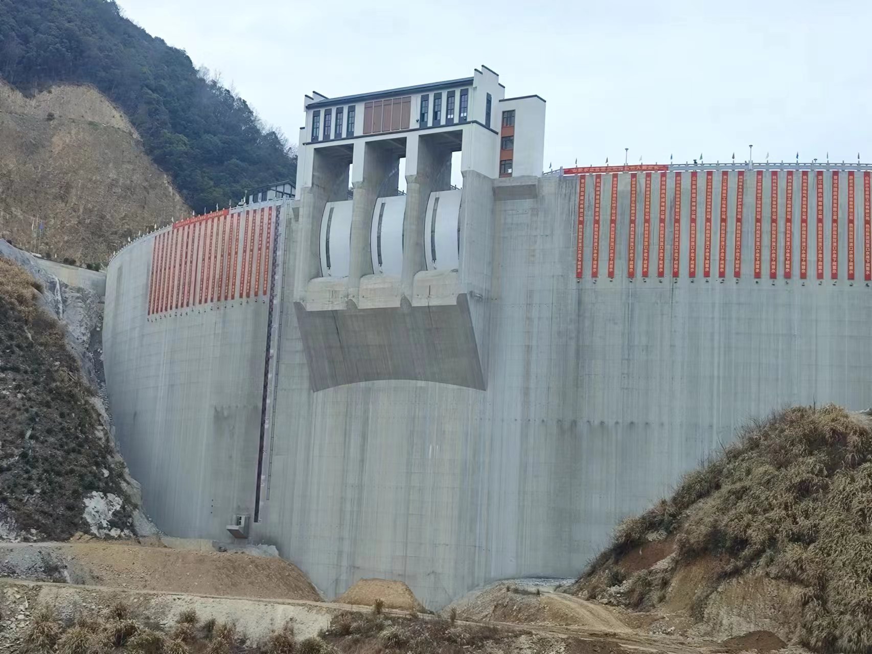 在临安区委、区政府的正确领导下,在临安区水利水电局和工程建设指挥部的精心组织和指导下,山东水总作为社会资本方与政府股东方临安水利开发华体会平台迅速完成了项目华体会平台组建及参建单位招标工作,高标准、高质量推进项目建设,将安全文明标准化、党建引领和科技创新融入到项目建设的全过程,先后荣获了“浙江省水利文明标准化工地”和“党建进工地”示范工程,获得了1项水利行业工法、6项发明专利和9项QC成果,2项科技成果被工信厅立项。特别是施工期间克服了新冠疫情、超长汛期、料场重大设计变更及高坝、拱坝施工技术难度大等不利因素影响,历经1650天的日夜奋战,终于迎来了双溪口水库下闸蓄水这一重要时刻。