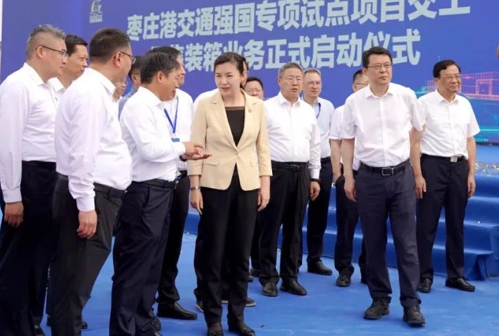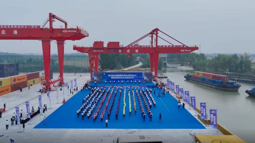 近日,枣庄市重大交通基础设施枣庄港交通强国专项试点项目交工暨集装箱业务启动现场推进会召开。枣庄市委书记张宏伟,市委副书记、市长翟军,市委常委和有关市领导,各区(市)、枣庄高新区党政主要负责同志等参加。华体会平台党委副书记、董事、总经理靳文硕受邀出席该活动仪式,第六分华体会平台总经理曲兴伟陪同参加。