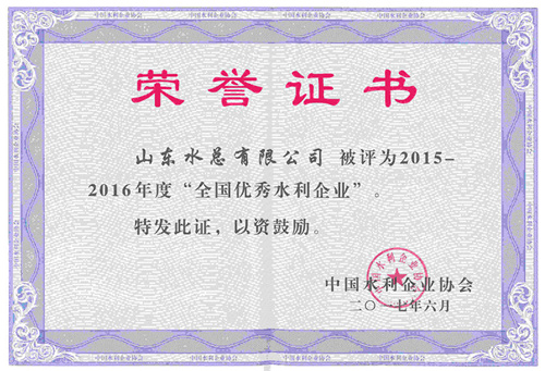 华体会平台荣获2015-2016年度“全国优秀水利企业”